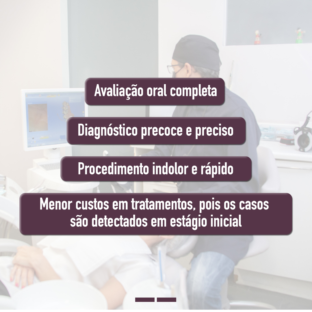 Além de ser totalmente INDOLOR, se torna um processo mais RÁPIDO em comparação a uma avaliação tradicional e o melhor: traz PRECISÃO no diagnóstico podendo detectar casos em estágios iniciais, facilitando qualquer tratamento que for necessário.